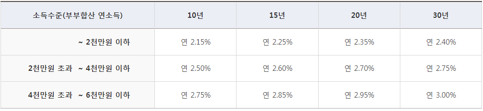 ※단 생애최초, 2자녀 이상 가구 또는 신혼가구는 연소득 7천만 원까지 가능
