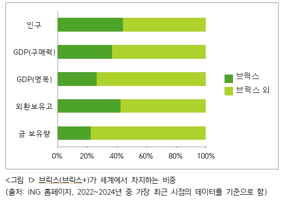 브릭스는 2001년 경제학자 짐 오닐이 처음으로 제안한 개념으로, 신흥 경제국(경제가 빠르게 성장하고 있는 국가)들이 모여 경제 협력을 통해 상호 발전을 도모하는 그룹입니다. 이들은 세계 인구의 약 40%를 차지하며, 세계 GDP의 약 25%를 차지하고 있습니다. 이러한 비율은 시간이 지남에 따라 더욱 증가할 것으로 예상됩니다.