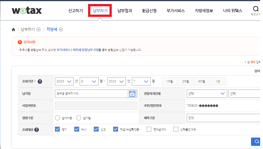 2.모바일버젼 위택스 어플로 재산세 납부 방법