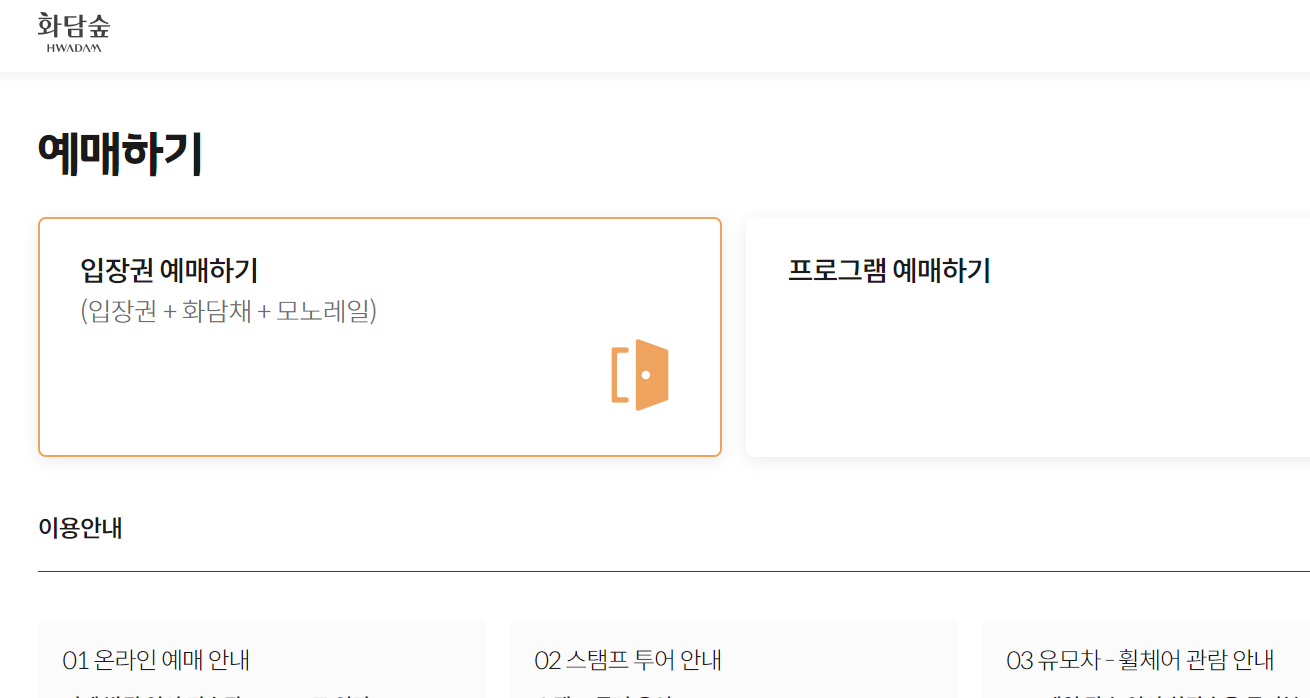 ** 입장권은 필수예매이지만 화담채와 모노레일은 선택 사항입니다.