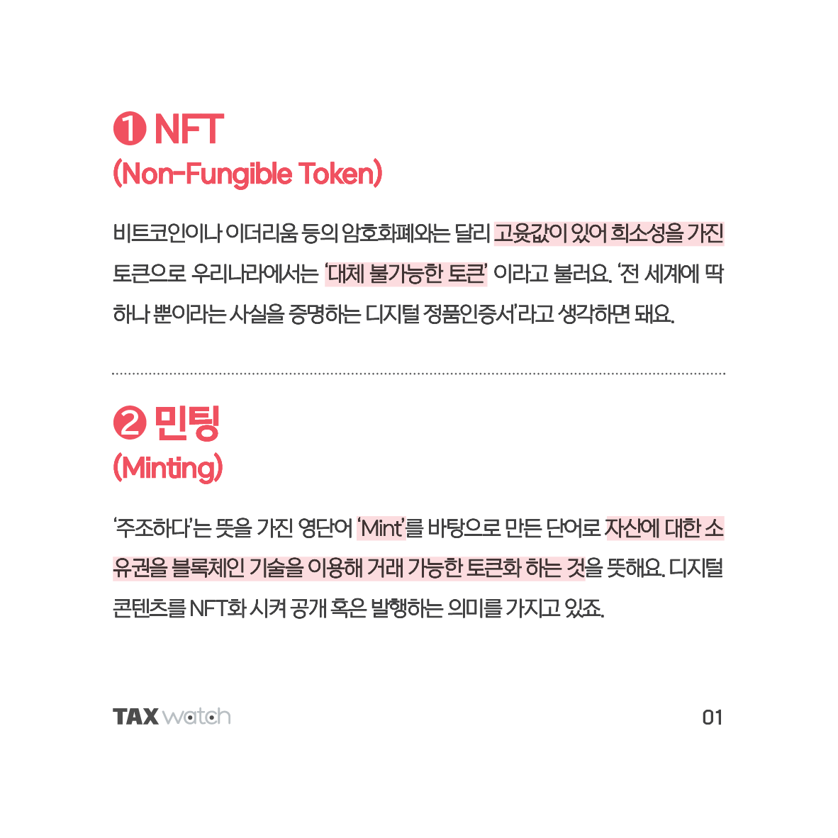 NFT는 "Non-Fungible Token"의 약자로, 한국어로는 "대체 불가능한 토큰"이라고 불립니다. 일반적인 암호화폐와 달리, NFT는 각각 고유한 특성을 지니고 있어 다른 토큰과 교환할 수 없는 특징이 있습니다. 예를 들어, 비트코인이나 이더리움과 같은 암호화폐는 서로 대체 가능하지만, NFT는 하나하나 다른 디지털 자산을 나타내므로 대체 불가능합니다. 이러한 특성 때문에 NFT는 디지털 아트, 음악, 게임 아이템 등 다양한 분야에서 사용되고 있습니다.